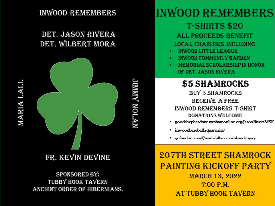 Join us this Sunday March 13th at 7pm at Tubby Hook Tavern to honor recent fallen community heroes: Detective Jason Rivera, Detective Wilbert Mora, James Nolan, and Father Kevin Devine.